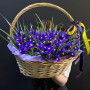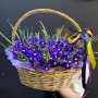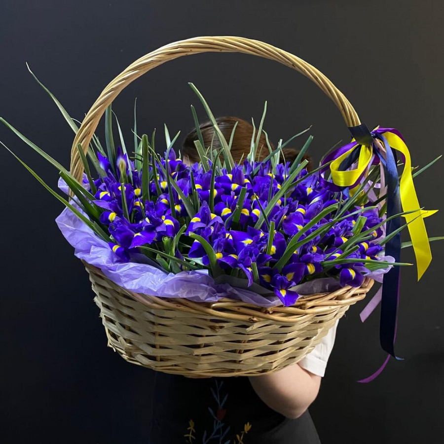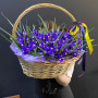 101 синий ирис в плетенной корзине в Черноголовке