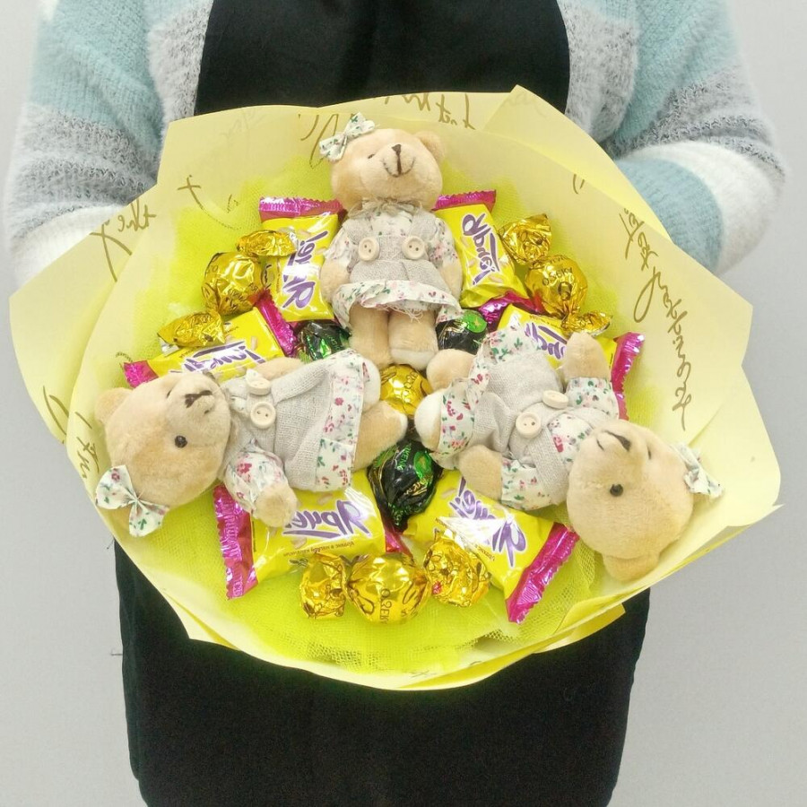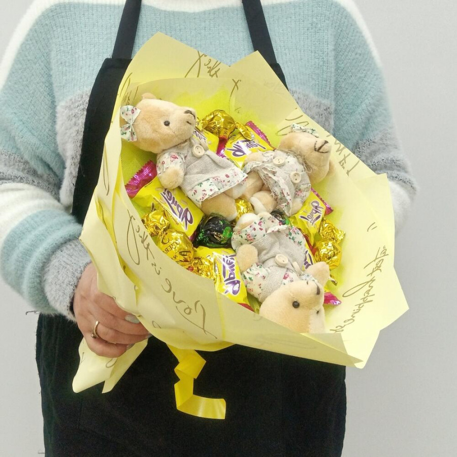 Букет из игрушек медвежат и конфет в Черноголовке